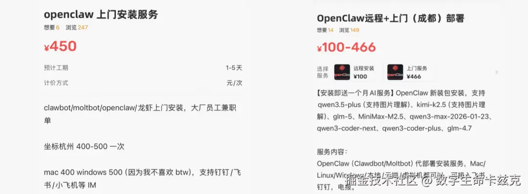 还有另一个非常魔幻的事。就是OpenClaw收费上门安装。