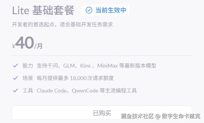 收费499块钱,上门一趟,帮我们小朋友装上了OpenClaw,连上飞书和Github,并且说包第一个月的Token消耗,直接反手给我们买了个百炼上面Coding Plan的Lite套餐。